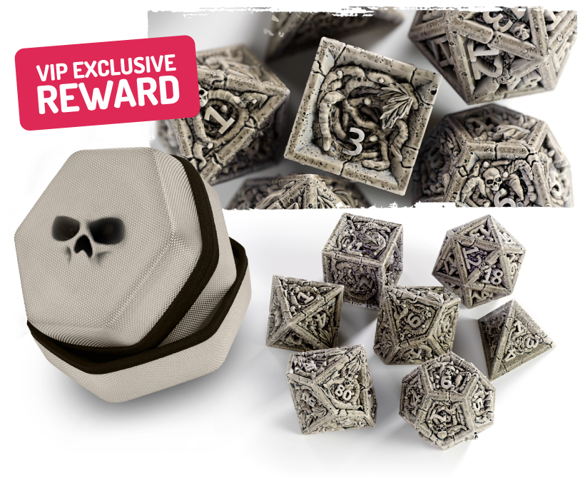 IMPORTANT: This is an Exclusive VIP Reward, for this reason the dice set will not appear on Kickstarter but will be included as a reward without requiring any additional action from you.